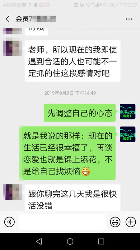 服务老师对会员做心理咨询会员很满意